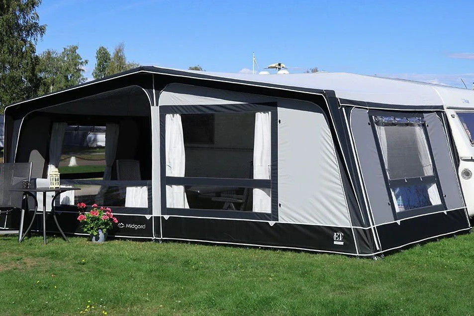 Et helårstelt for alle sesonger! Vårt frittstående helårstelt med sluse til campingvognen....
