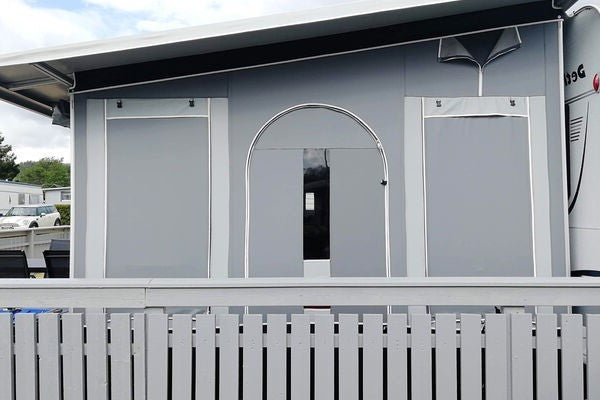 Et helårstelt for alle sesonger! Vårt frittstående helårstelt med sluse til campingvognen....
